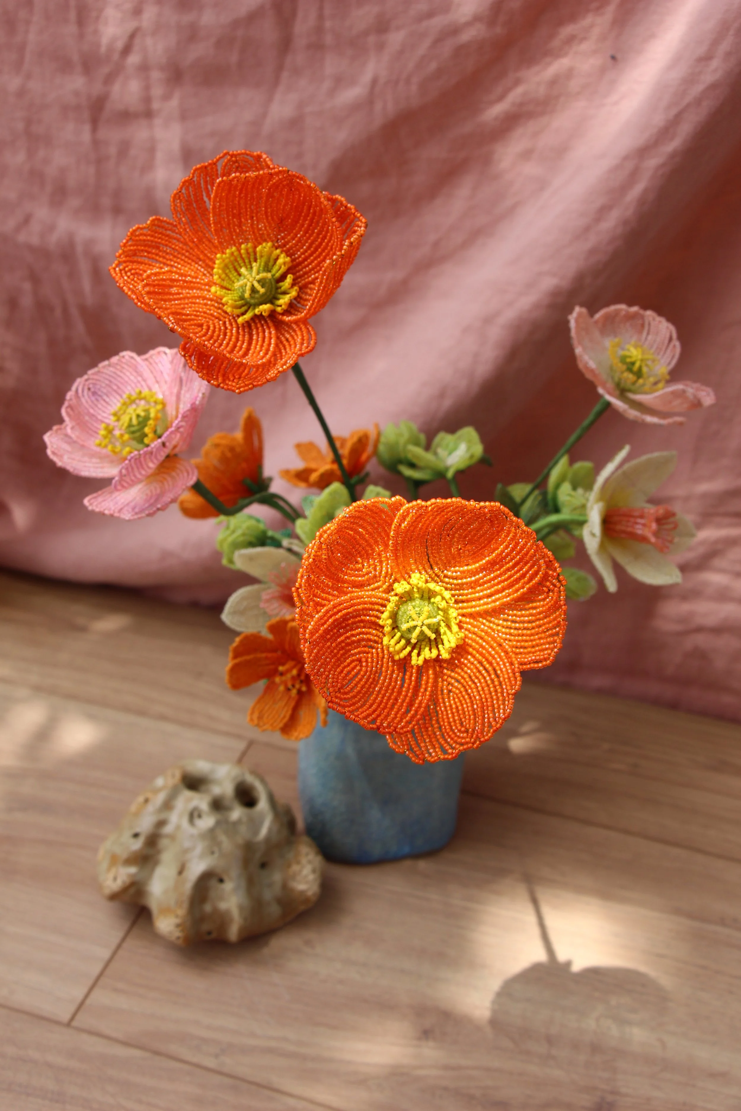 Delicate, sculptural botanicals from glass, metal, and thread.Each piece is built slowly by hand in Aotearoa, somewhere between flower and object. Past Projects + Flower Archive